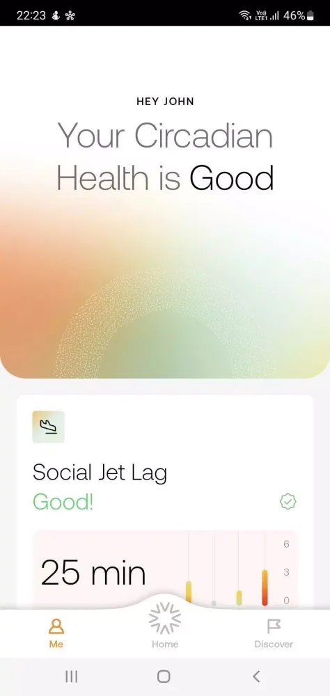 Utilizing proprietary algorithms and the latest scientific advancements, the AYO app calculates and presents your personalized Circadian Health. This metric is based on your social jet lag and sleep debt, giving you insights into how synchronized you are with your natural circadian rhythm. This internal clock influences numerous physiological processes, including sleep, alertness, metabolism, and immune response.