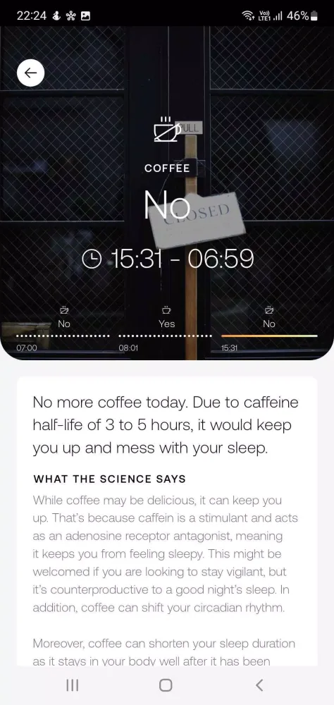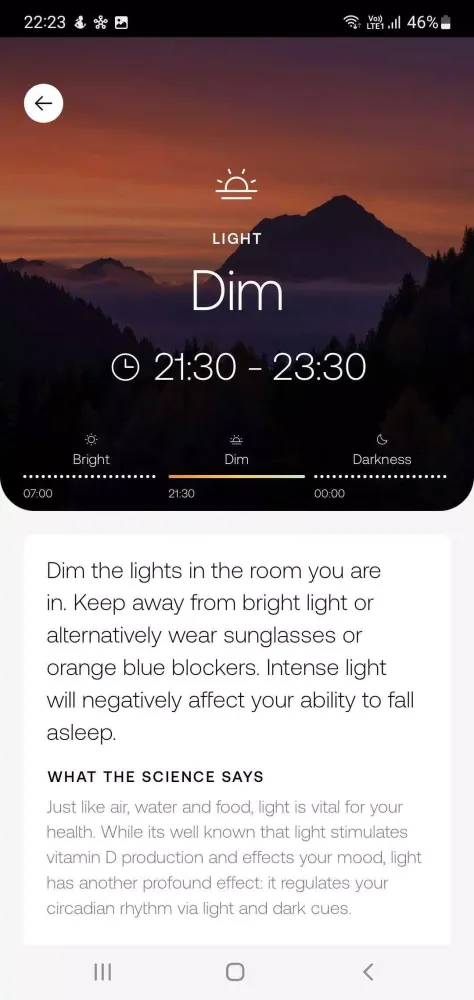 - Personalized Recommendations: Get tailored advice for each stage, covering light exposure, dietary choices, coffee intake, cognitive activities, exercise, and sleep patterns.
