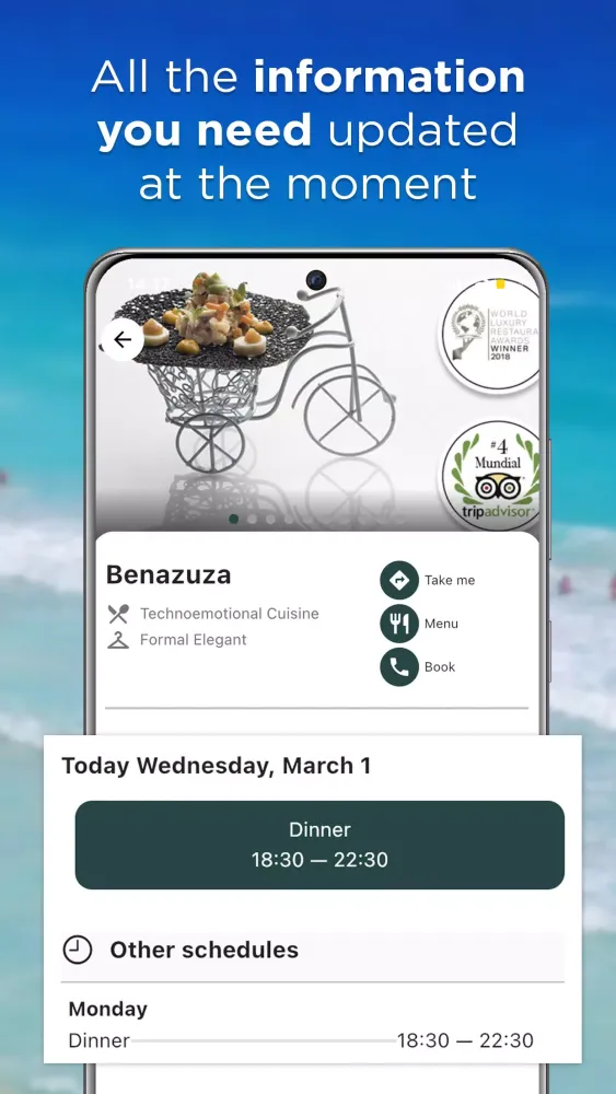 - Order Room Service Instantly: Order food and beverages directly from your phone and have them delivered to your room with just a few clicks.