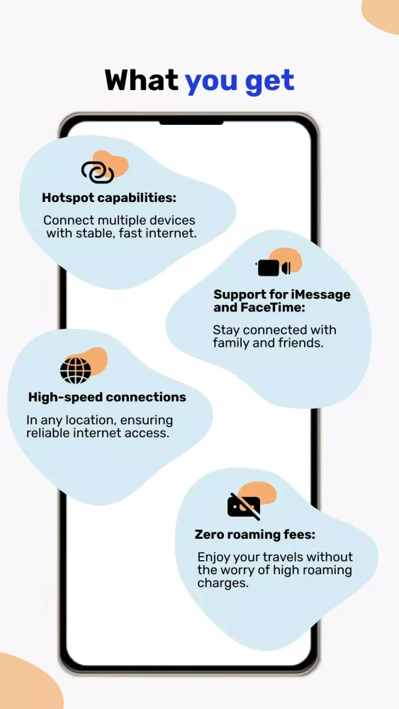 Convenient and Reliable: An eSIM is a digital SIM card that you can purchase online and install on your phone in just seconds. You can retain your local SIM card for calls, ensuring you remain reachable via WhatsApp, iMessage, or FaceTime.