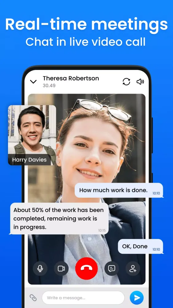 - Collaborate with your team in real-time using video, audio, and screen sharing.