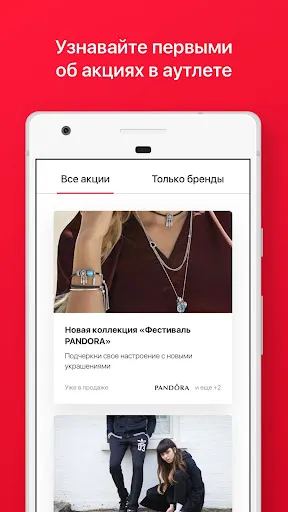 Os usuários do aplicativo mobile de Brands' Stories Outlet recebem as primeiras notificações sobre promoções, eventos e preços especiais.