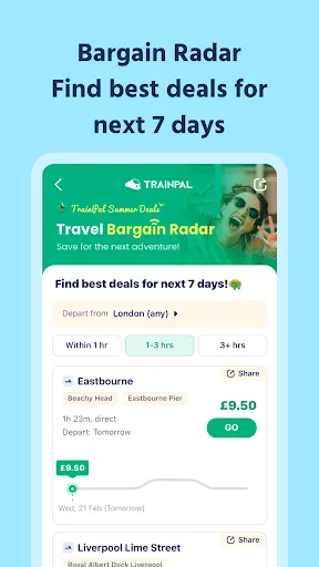 • Discounted fares: TrainPal supports all Railcards and helps you find the best deal for train tickets online.