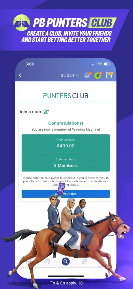 Start betting 'Better Together' with PB Punters Club! Create a club, invite your friends, and access exclusive club offers and promotions. Enjoy great odds on thousands of racing and sports markets, and track bets for every club member. All members contribute to the club account and share in the winnings equally.