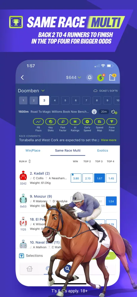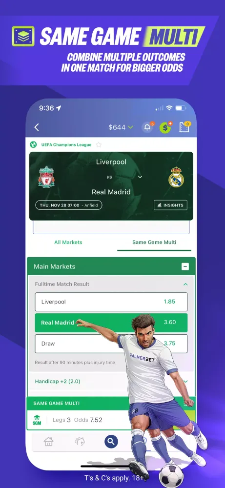 Increase your odds with Same Game Multi (SGM) on popular sports leagues like NBA, NBL, NFL, and major soccer competitions like the EPL and UCL. For horse racing, use Same Race Multi (SRM) to select up to four runners to finish in the top four of a race.