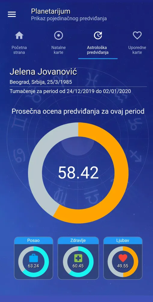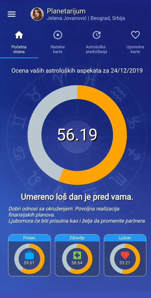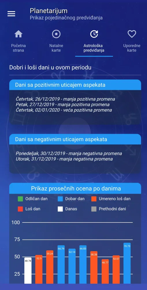 Astrological Forecasts: Receive both short-term and long-term astrological predictions based on your natal chart. The app estimates potential periods of good fortune or challenges and suggests activities that align with the selected time intervals.