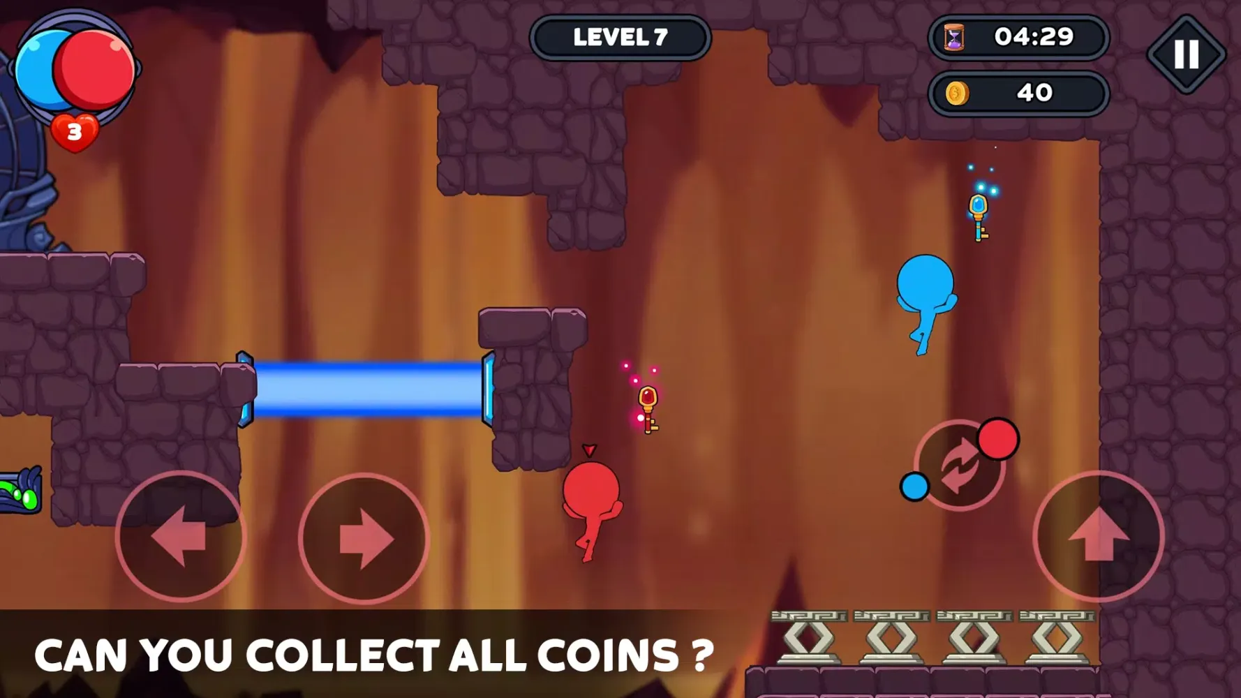 Do you think you have what it takes to work together and conquer each level? Download "Red and Blue Stickman" now and embark on this thrilling adventure!
