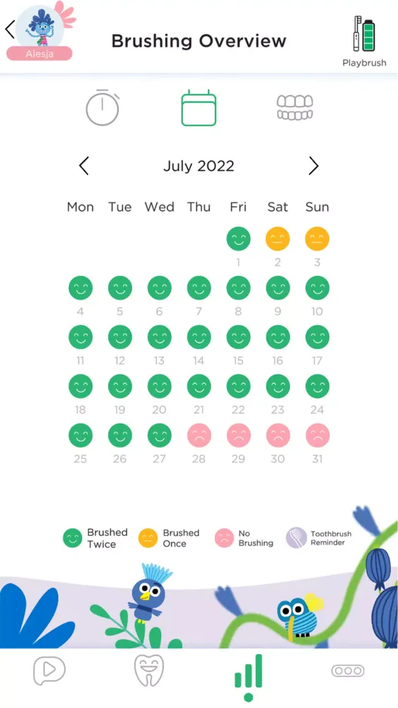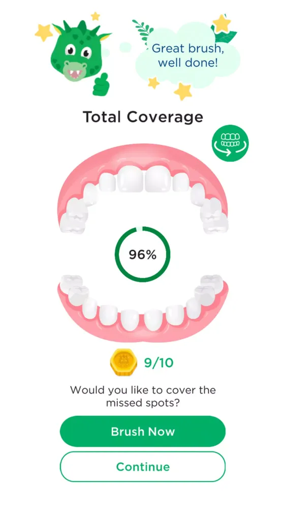 Parents can keep track of their child's brushing progress with detailed brushing statistics. These stats are easily accessible and help monitor, evaluate, and support brushing habits over time and across all games. To add even more excitement, users can collect Dayo coins during each brushing session. These coins can be redeemed in the thrilling bonus world "My Buddy Dayo," where they can take care of a virtual dragon, similar to having a digital pet.