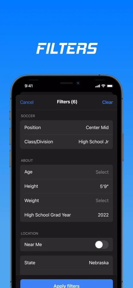 With Search Filters, recruiters can efficiently pinpoint the ideal athletes based on precise criteria. For instance, a soccer coach looking for a female center midfielder aged 18 in San Jose, California, with a GPA of 3.5 can easily find all matching athletes and their digital portfolios. This streamlined approach saves time and effort while ensuring compliance with NCAA regulations.