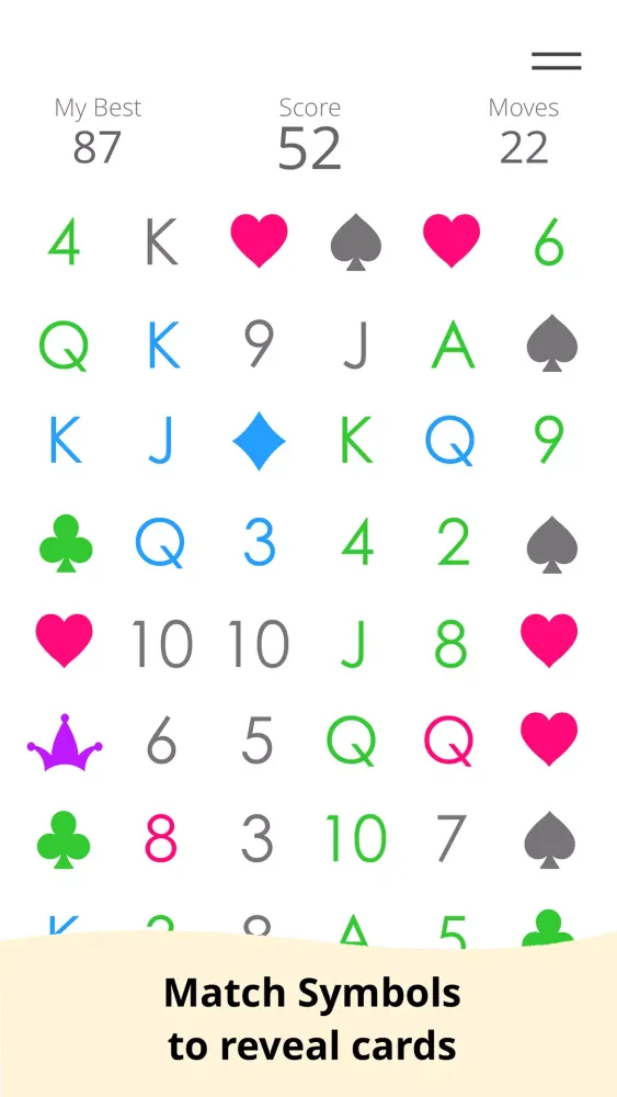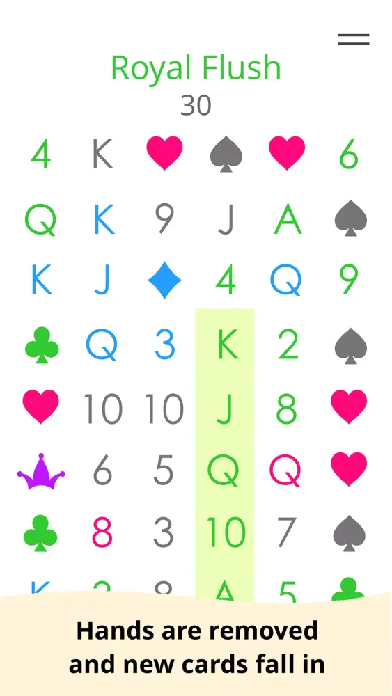 At its core, Poker Punch challenges you to match card symbols in a grid layout, revealing poker cards along the way. The mechanics are simple yet engaging: line up 2 or more cards to score points, but aim for the elusive Royal Flush (A K Q J 10 of the same color) to earn the biggest rewards. Each game begins with a randomly shuffled deck, ensuring no two rounds are ever the same. Even after hundreds of hours of gameplay, you'll find endless variations and new strategies to explore, keeping the excitement alive for years to come.