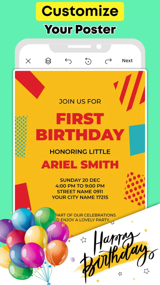 Whether you need to create an event announcement, a business flyer, or a special occasion template, Design Creator has got you covered. Our poster maker design app is designed to help you craft eye-catching designs that stand out.