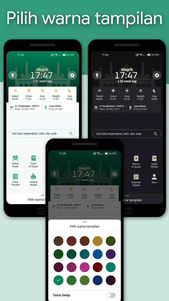 - Two choices of rasm (Kemenag RI and Medina).