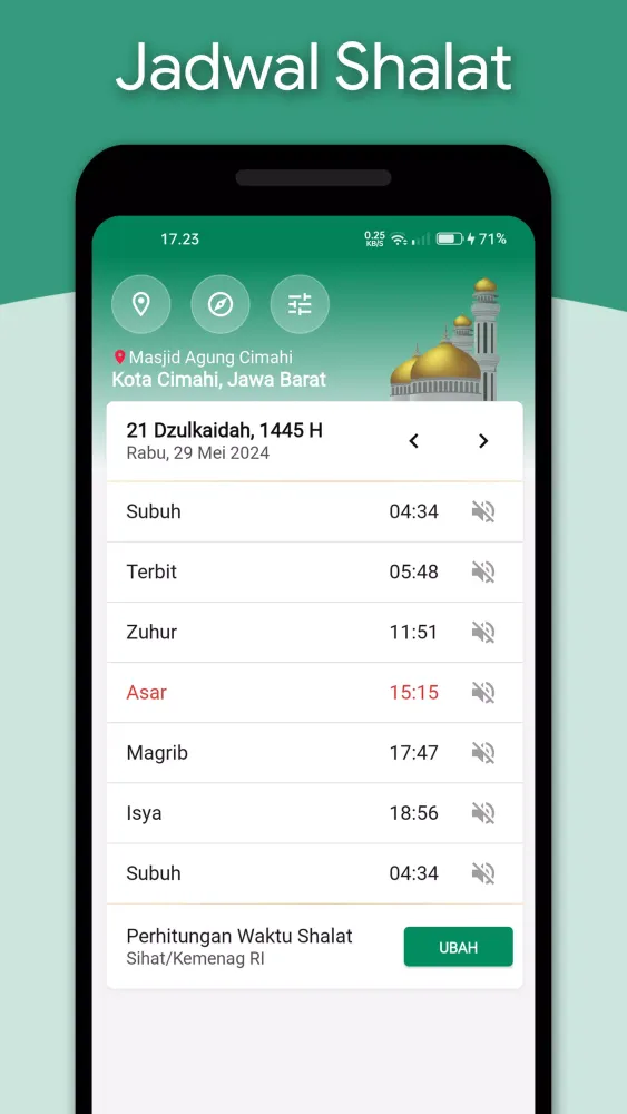 - Prayer times and Qibla direction.