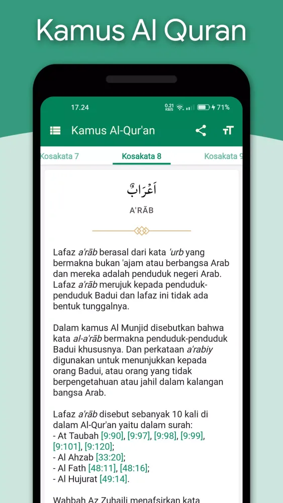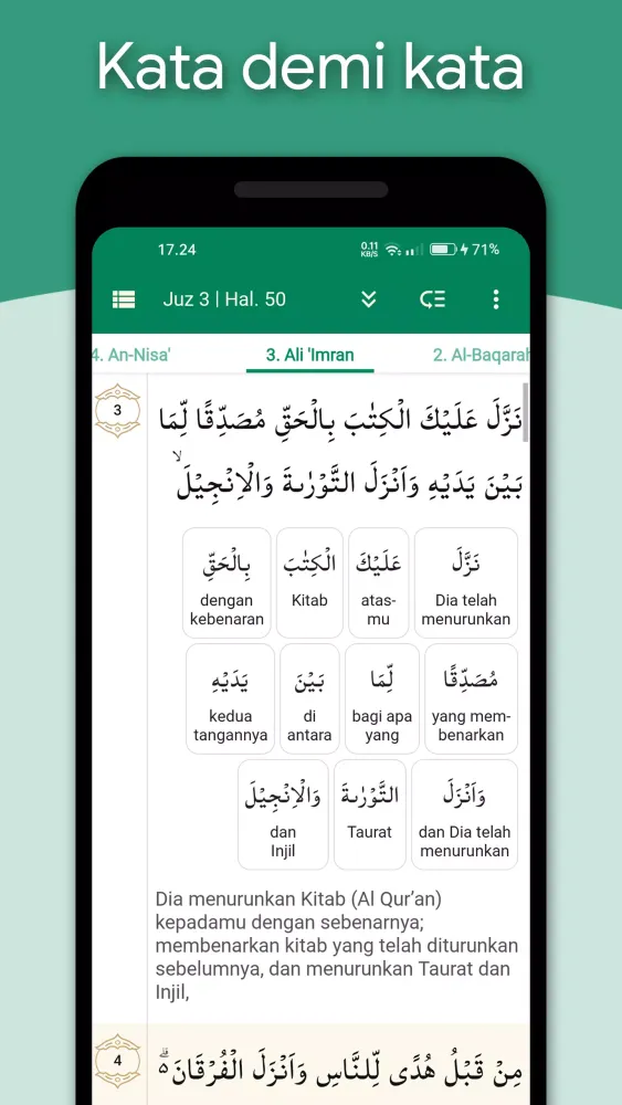 - Verse and word translations.