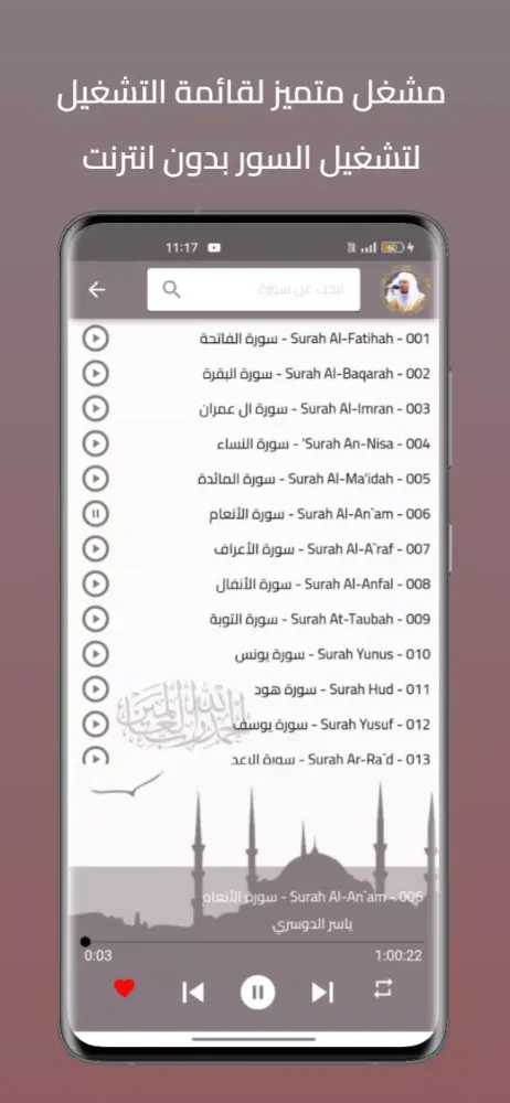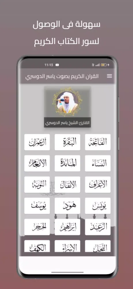 At its core, the Yasser Al-Dossary app presents the voice of Sheikh Yasser Al-Dossary, one of the most respected and melodious Quranic reciters today. With just one application, users can access all 114 surahs of the Quran directly from their Android-powered devices such as smartphones or tablets. The app eliminates the need for constant internet connectivity, allowing listeners to enjoy the soothing recitation of Sheikh Yasser Al-Dossary anytime and anywhere. This makes it an ideal companion for individuals who wish to engage with the Quran at their convenience, regardless of their location.