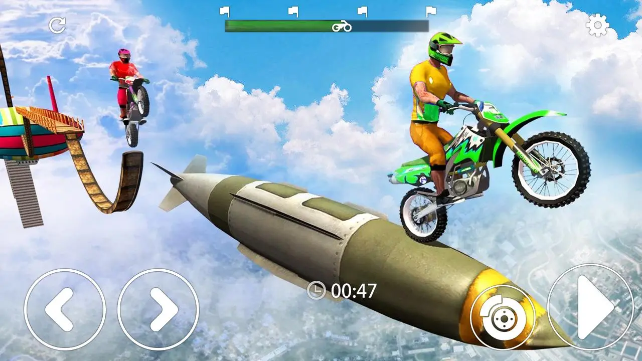 Mega ramp stunt style motorcycle game is filled with challenging race and thrill. Show mad skills of moto crossing and do ultimate thrilling bike stunts. Top bike racing game with xtreme fever of moto race is here with many levels to play. Dirt bike racing for bike lovers filled with jumps and bumps. It's time to prove yourself as a top bike rider