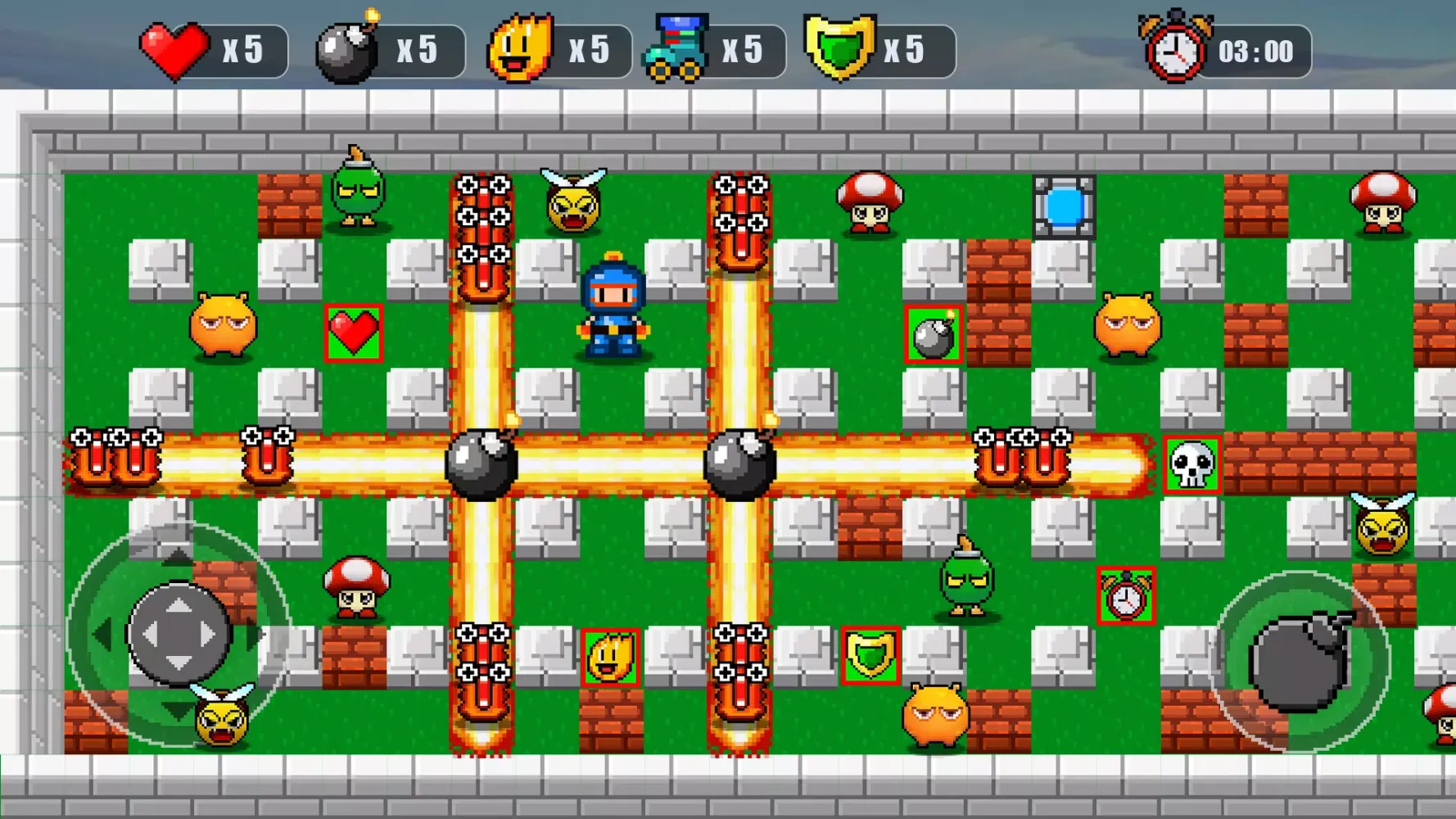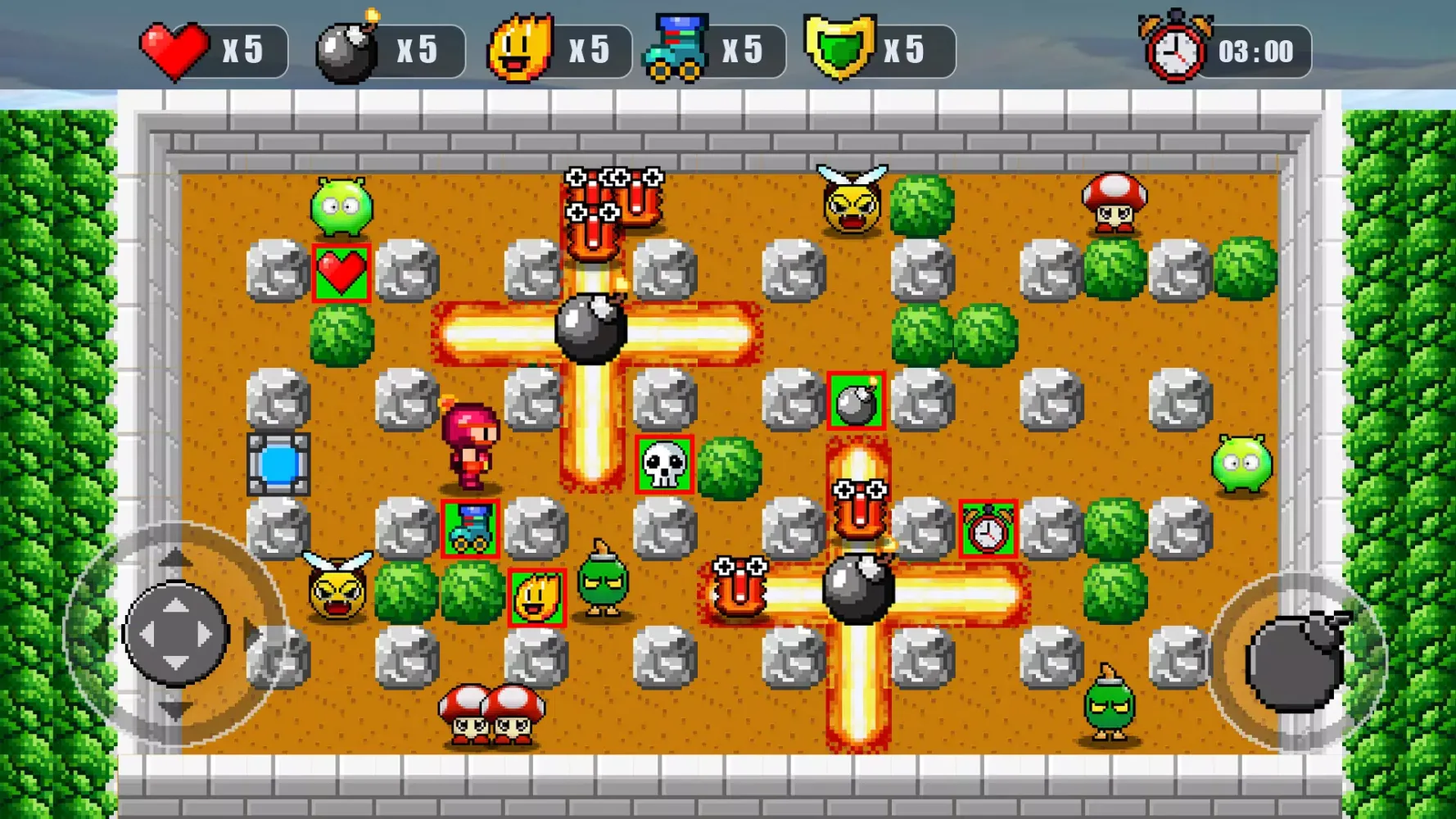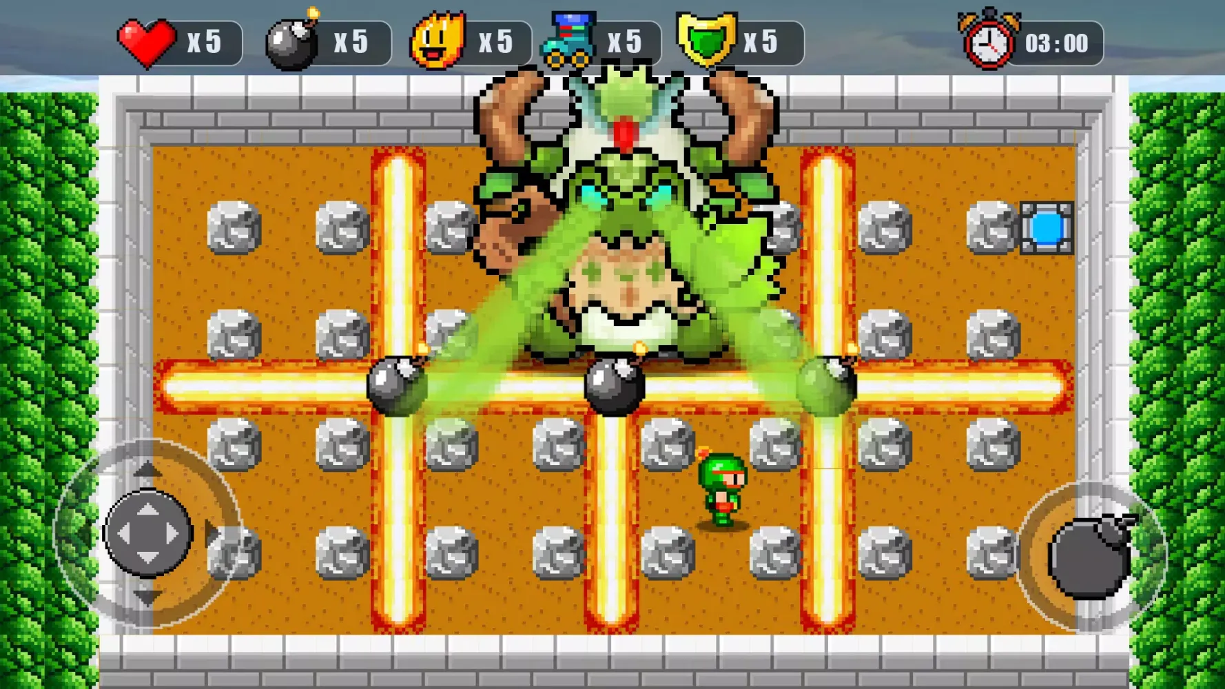 Prepare for epic showdowns as you face off against formidable bosses and their deadly skills. To succeed, you'll need to employ tactical strategies and precise timing when placing your bombs. The game offers a diverse range of levels, ranging from beginner-friendly to highly challenging, catering to both newcomers and seasoned veterans. Whether you're playing online or offline, the thrill of defeating bosses and progressing through the ranks remains constant.