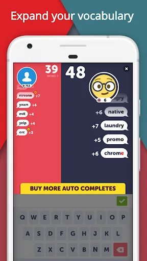Well, somewhat - it’s pretty simple in the beginning while you are learning, so picking up the concept is easy... but it doesn’t stay that way for long! This brain stretching game switches up the rules every round. Every word you use generally has to start with the same letter that your opponent's previous word ended with, and on many levels specific letters are required to be used or simply removed from the keyboard entirely! Don’t let the game intimidate you though. If you’re at a loss for a word that fits the criteria established for you, use the AutoComplete feature for some suggestions.