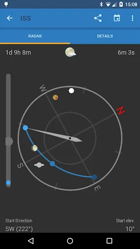 ISS Detector Pro به شما گفتار میدهد که زمان و جای مناسب برای دیدن ایستسیاس یا تیرههای Iridium چیست. چند دقیقه قبل از عبور، شما تذکر خواهید گرفت. شما هر عبور از ایستسیاس را نخواهید دید و هر تیرهای را که از شبکهی ارتباطات Iridium استفاده میکند، نخواهید دید. ISS Detector همچنین بررسی میکند که شرایط آب و هوایی مناسب است یا خیر. هوا آبی بینهایت برای مشاهده مناسب است.
