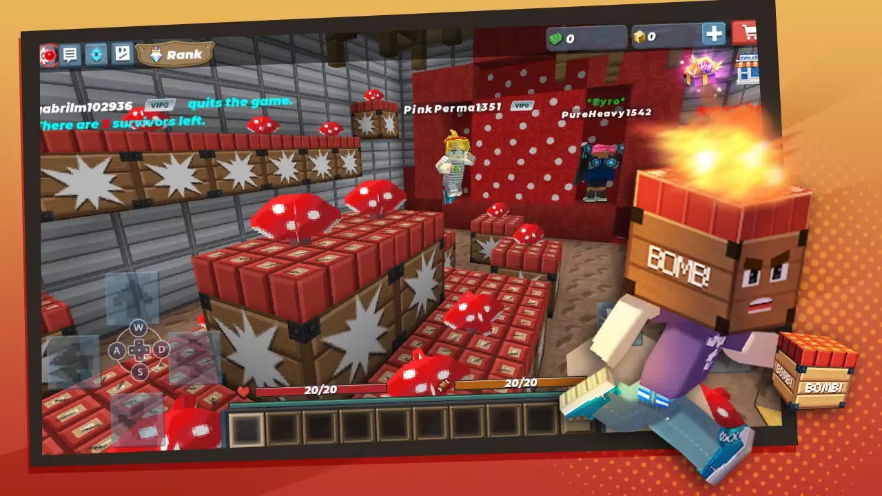 In TNT Tag, multiple players compete simultaneously in fast-paced online battles. Each round begins with one player being randomly selected to hold the bomb. This player must then strategically pass the bomb to other players, while the rest try to flee and avoid being caught in the explosion. The bomb detonates at the end of the countdown, eliminating the player holding the bomb.