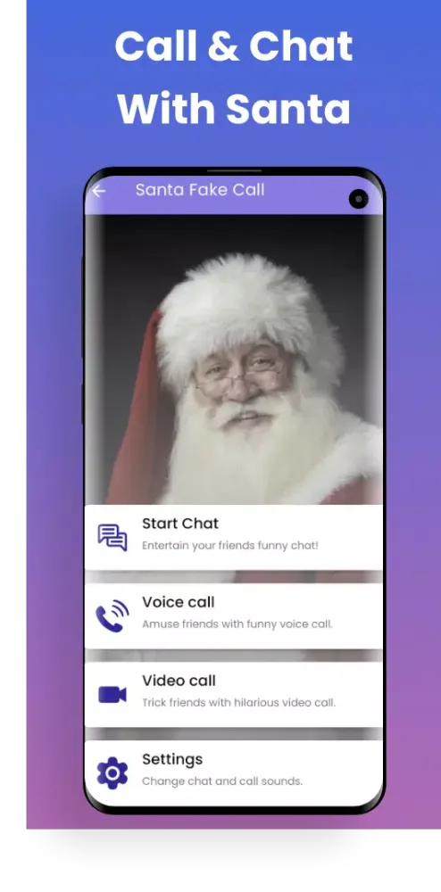 Experience the magic of Christmas like never before with our "Santa Claus Fake Call, Chat" application. Imagine receiving a genuine video call from Santa Claus himself! Our app offers a lifelike simulation of a call from Santa, complete with a personalized message directly from the jolly old elf. Additionally, you can engage in conversations with both Santa and his counterpart, Blacksanta. They'll inquire about whether you've been naughty or nice, and they'll also ask what gifts you're hoping for this holiday season.