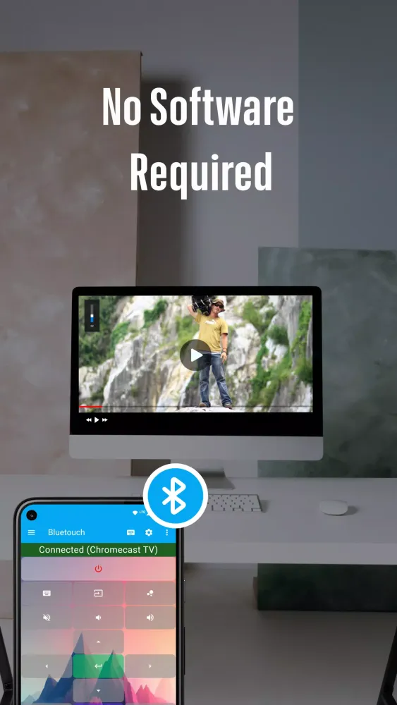 Connect your device effortlessly via Bluetooth without needing any additional software. Whether you're using a computer, tablet, smart TV, or any other Bluetooth-enabled device, Bluetouch™ ensures smooth integration. Utilize this app as a media player to enjoy movies on your tablet or as a touchpad to control your PC, providing a comprehensive solution for all your needs.