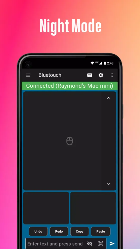 Bluetouch™ serves as a reliable backup for your existing keyboard, mouse, or remote, safeguarding against loss, damage, or battery depletion. With its intuitive design and extensive features, this app enhances your overall device experience, ensuring that you have access to all the tools you need at your fingertips.