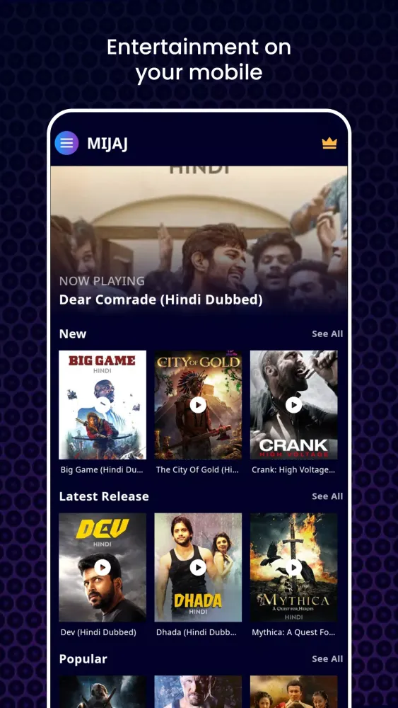 Watch the latest and most popular Hindi web series and movies right at your fingertips! The Mijaj App is designed to bring you the best regional content so you never have to miss out on the trending shows and films. Immerse yourself in a world of captivating stories and unforgettable characters.