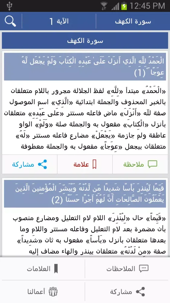 Users can share the annotated text along with its grammatical analysis directly via social media, fostering a community of learners and scholars. Additionally, the application maintains a comprehensive list of all written notes and marked verses, providing a centralized repository for users' insights and reflections.