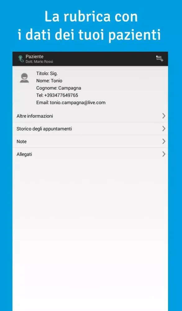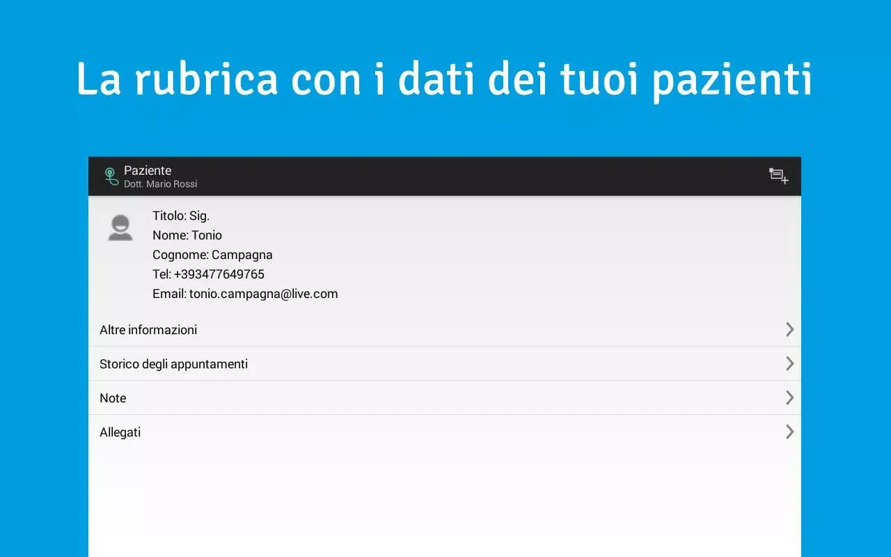 - Patient Directory: A comprehensive directory with patient profiles that include visit histories, attached files, and personal notes.