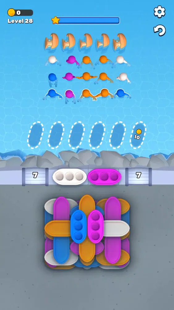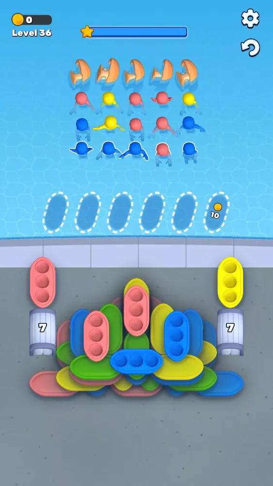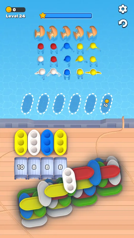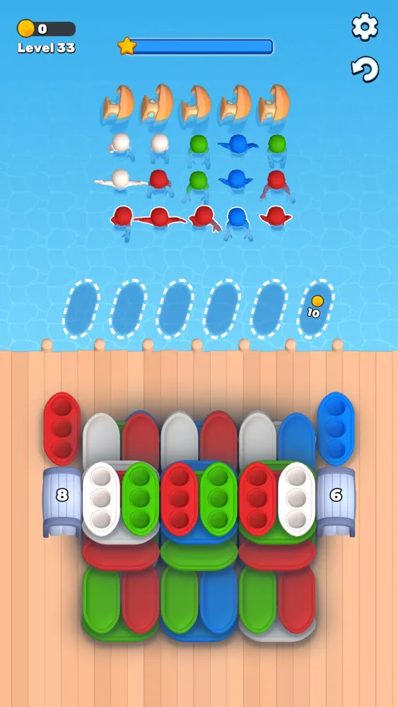 In this unique adventure, colorful canoes stack one atop another, forming a precarious tower that extends into the vast sea. Your objective is straightforward yet engaging: save stranded individuals by tapping on the top canoes. Each tap must be precise, as you need to match every canoe with three people of the same color to ensure their safe passage.