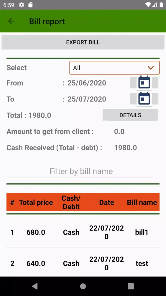 - Custom Date Bill Reports: Generate reports with specific date ranges.