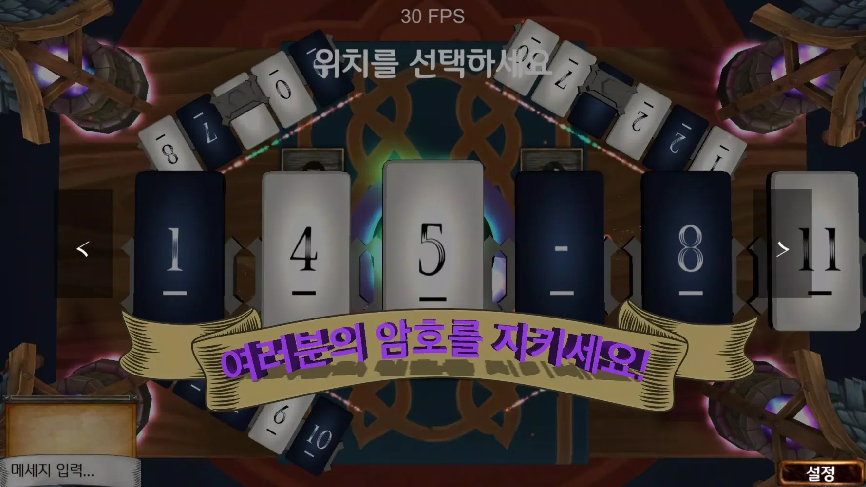 Card Placement: On your turn, you'll select either a black or white password card. Place the card according to the rules: the smaller numbers go to the left, and the larger numbers go to the right. For example, if you have cards numbered 1, 5, and 7, and you draw a card with the number 6, it should be placed between the 5 and 7.