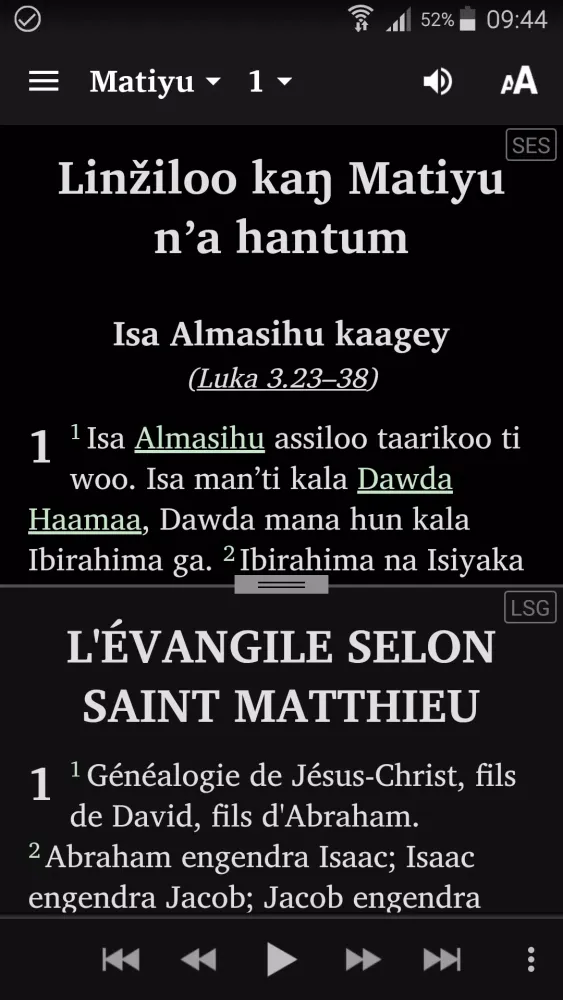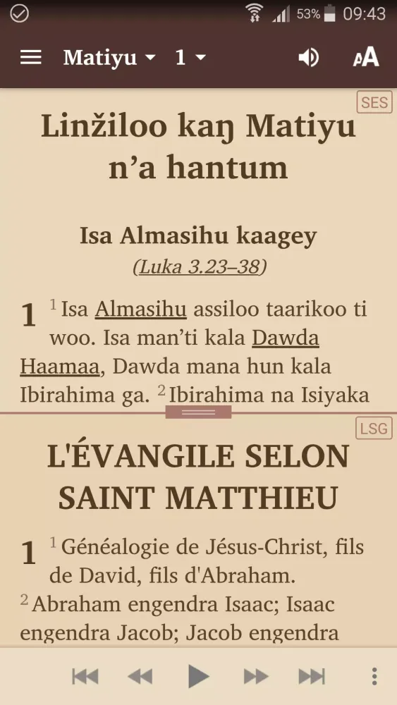 The application "Bible en Songoy de Gao" is an innovative and invaluable resource designed to enable users to read and listen to the Bible in the Songoy dialect of Gao, spoken primarily in Mali. This app serves as a gateway to the rich spiritual heritage of the Songoy people, offering both written and audio versions of significant portions of the Bible. The New Testament is fully accessible in both formats, while selected books from the Old Testament are also available in written form. The ongoing translation efforts reflect a commitment to preserving and sharing sacred texts with communities around the world.