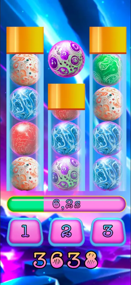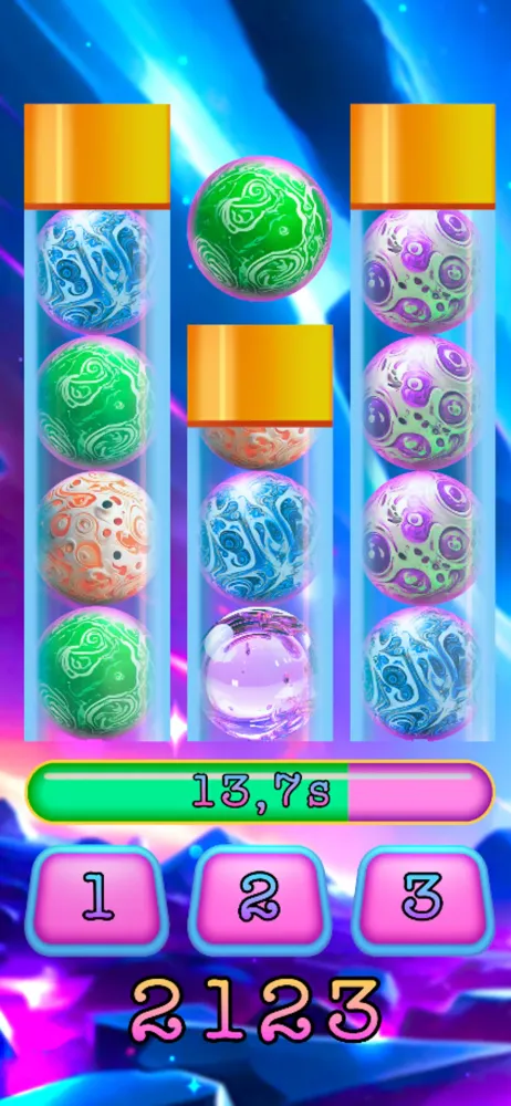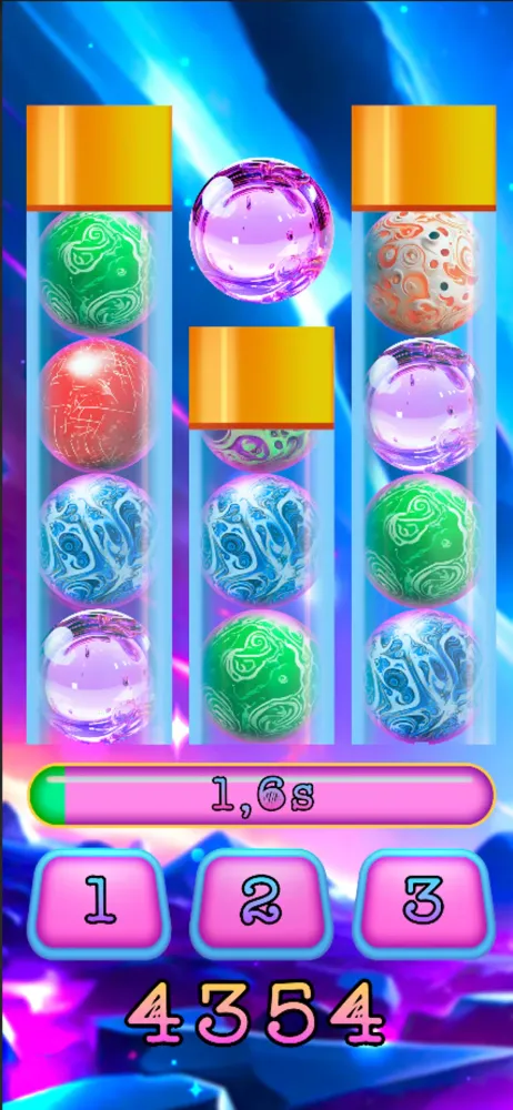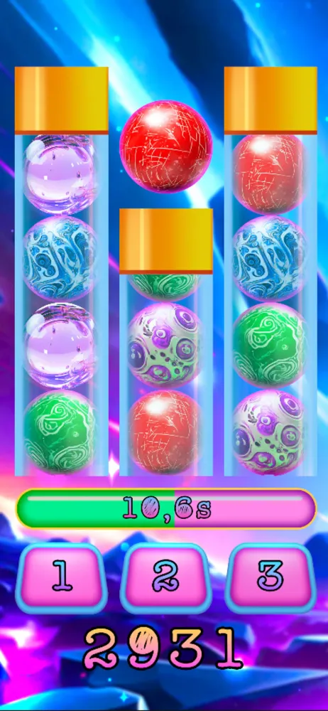 What makes Space Spheres particularly captivating is its combination of simplicity and complexity. While the rules are easy to grasp—find the right jar and press its button—the escalating difficulty keeps players engaged. The shrinking time increments demand heightened focus and precision, turning what initially seems like a casual activity into a high-stakes race against the clock. Additionally, the visual presentation of the balls and jars adds an aesthetic charm, making the gameplay visually appealing while maintaining its competitive edge.