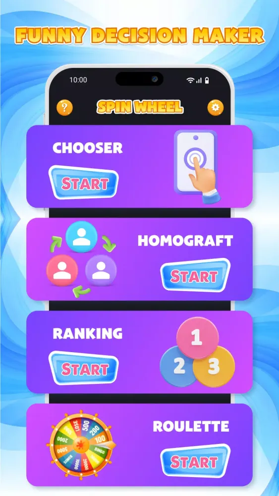 - Roulette Wheel: Use the random picker feature to make spontaneous choices with a simple spin of the wheel.