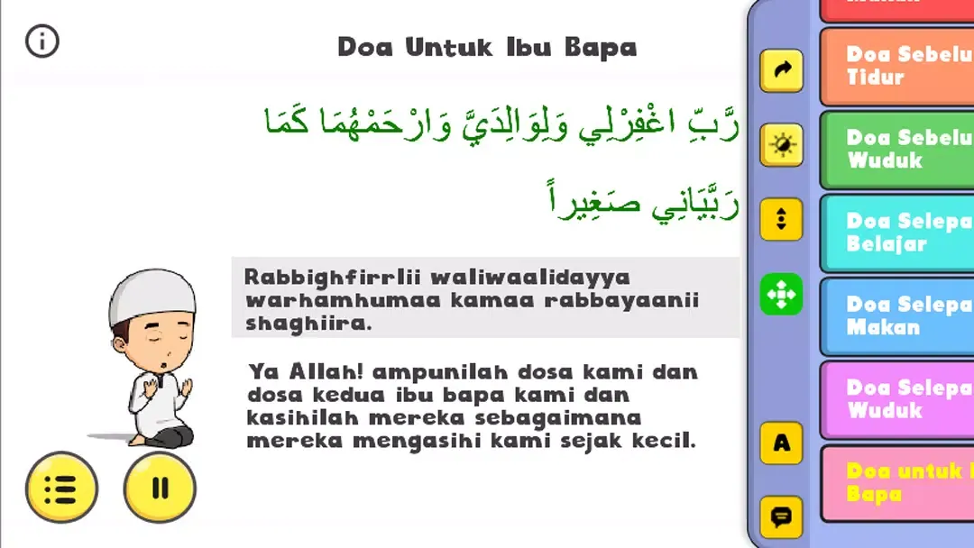 - Belajar doa-doa muslim & surah-surah pendek: Introduce Islamic prayers and short verses.