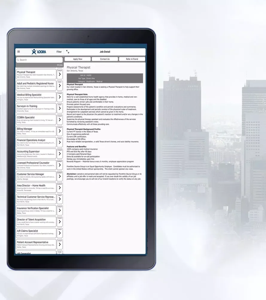 The Logra Solutions app offers an engaging and user-friendly interface, making it easy for both talent and businesses to access and utilize our comprehensive suite of services. Whether you're a job seeker looking to showcase your skills or an employer aiming to find the perfect fit, our platform streamlines every step of the process, ensuring efficiency and effectiveness.