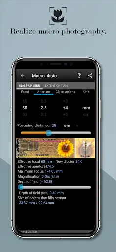 - Calculate for the macro photo the possible magnification with a close-up lens or an extension tube