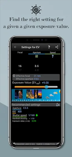 - Calculate the best setting for an EV (exposure value) given