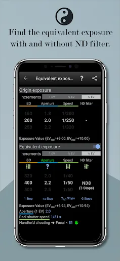 - Calculate the alternative/equivalent exposure (manages the ND filter and long exposures)