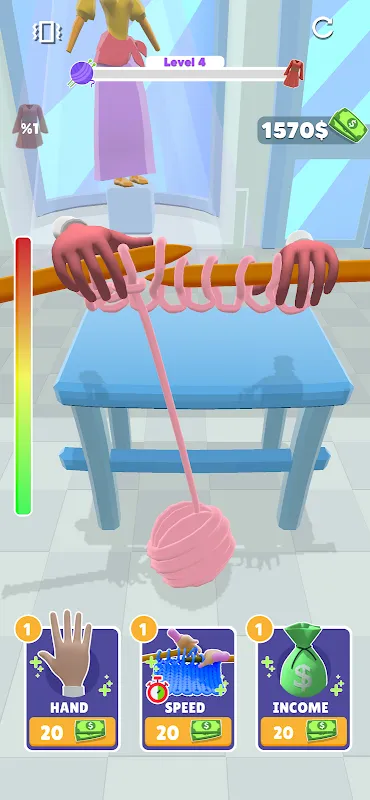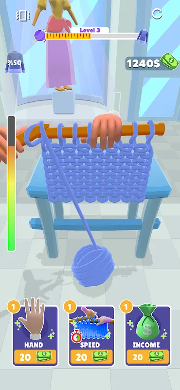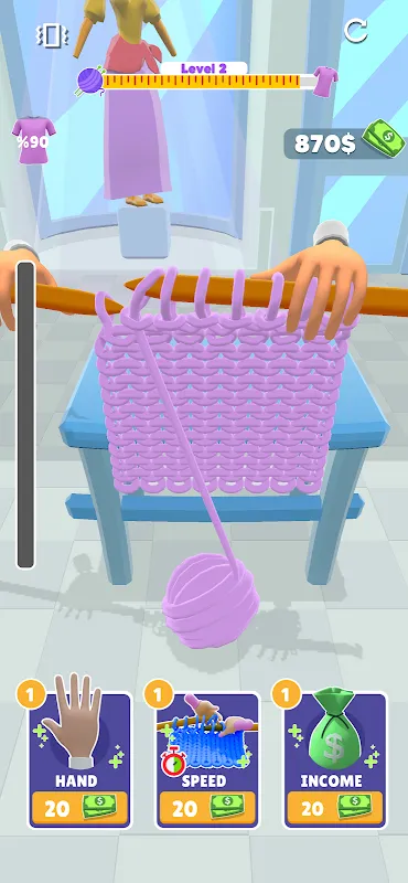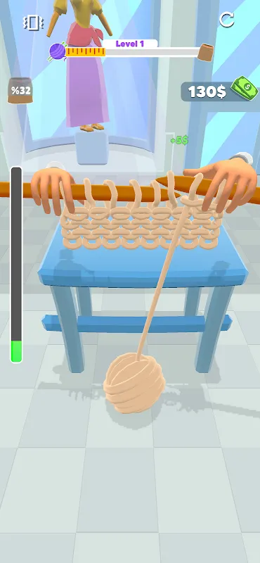 In this game, you'll embark on a journey to create stunning outfits. Each piece of clothing requires your full attention and skill. To succeed, you must keep your hands steady and move them in the right rhythm. The faster you knit, the quicker you can progress through levels and earn rewards. However, don’t forget to upgrade your tools and skills using your hard-earned points to stay ahead.