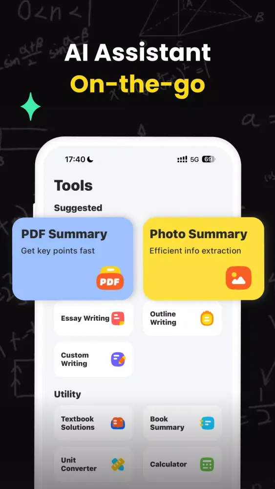 Homework Challenges: When you encounter difficult problems during homework, simply take a photo with your phone to get an instant answer. This helps streamline your study process.