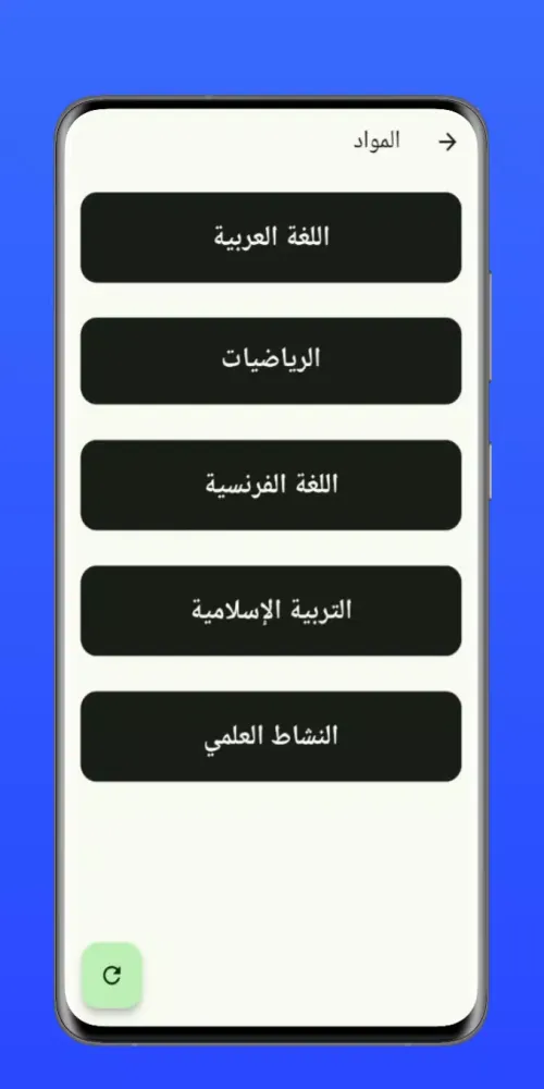 For instance, in the Arabic language section, the app provides multiple resources such as "Al-Mu'eed Fi Al-Lughah Al-'Arabiah" (The Beneficial in Arabic Language), "Kitabi Fi Al-Lughah Al-'Arabiyah" (My Book in Arabic Language), "Fi Rahab Al-Lughah Al-'Arabiyah" (In the Realm of Arabic Language), and many more. In mathematics, learners can access titles like "Al-Mu'eed Fi Al-Riyadhiaat" (The Beneficial in Mathematics), "Al-Jayyid Fi Al-Riyadhiaat" (The Good in Mathematics), and "Al-Manhar Fi Al-Riyadhiaat" (The Guide in Mathematics).