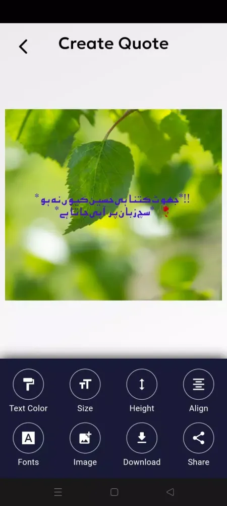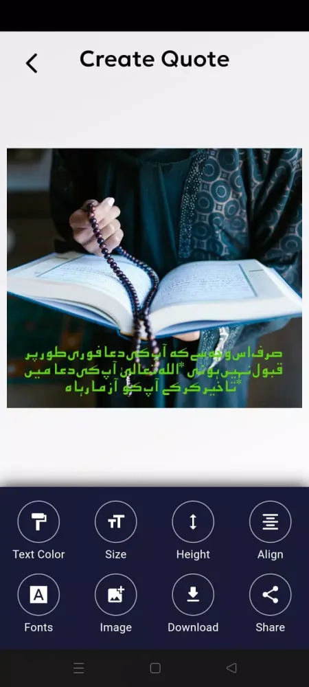🌍 Multiple Language Support: Enjoy QuotesMaker in various languages, including English, Hindi, Urdu, Arabic, and Farsi. Create and share quotes in your preferred language seamlessly, with support for Islamic quotes, Muslim quotes, and prophet sayings.