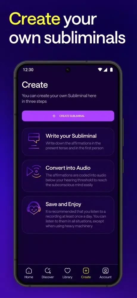 With Success Subliminals, you can create your own personalized subliminals that align perfectly with your goals and aspirations. Whether you're looking to boost confidence, improve relationships, or achieve financial prosperity, our intuitive tools make it easy to customize your subliminal experience. Each recording is engineered to bypass your conscious mind, delivering positive affirmations directly to your subconscious where they can take root and foster lasting change.