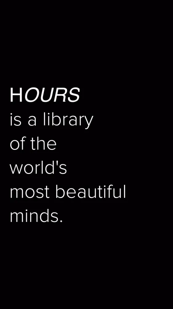 HOURS is a groundbreaking application that provides access to a library of the world's most influential thinkers and creators. This platform, aptly titled "HOURS," is designed to help users tap into timeless wisdom and insights from some of the brightest minds across various fields including art, innovation, philosophy, and entrepreneurship.