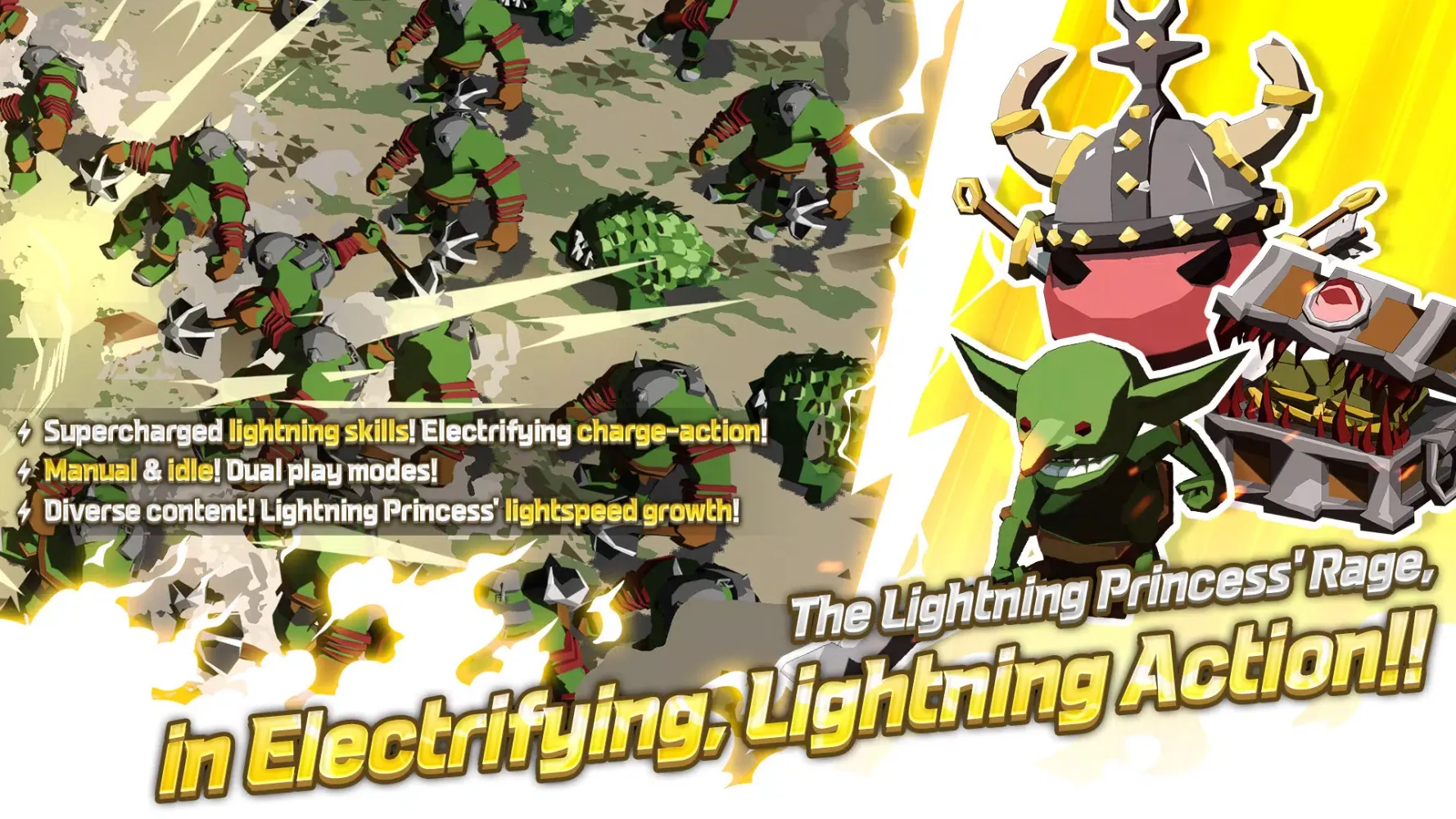 Welcome to the electrifying world of "Lightning Princess: Idle RPG," a 100% Overcharged Action RPG where you can experience the thrilling journey of the Raging Lightning Princess as she charges towards the throne!