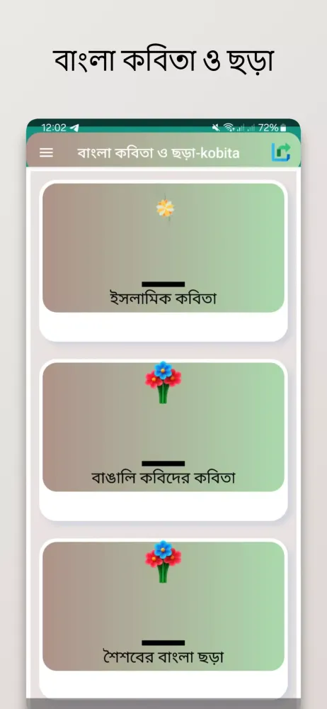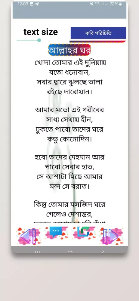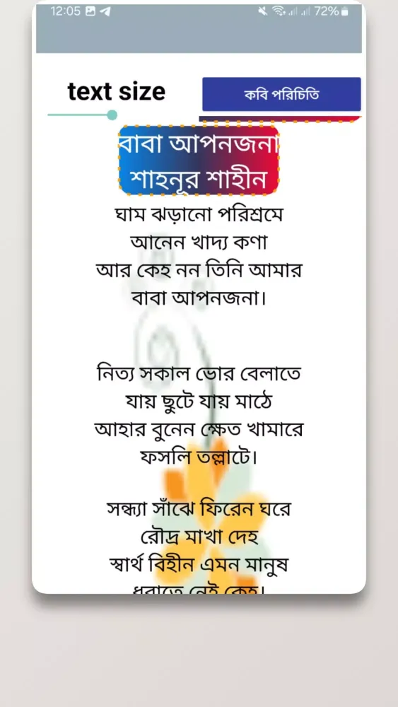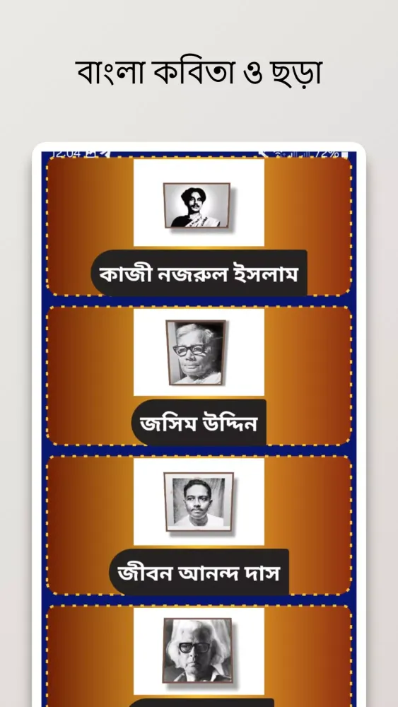 Each poet's work is beautifully illustrated, bringing their words to life and enhancing the overall reading experience. Whether you're a poetry enthusiast or simply looking for a moment of reflection, the "বাংলা কবিতা ও ছড়া - kobita" app offers a rich tapestry of emotions and insights, making it an invaluable resource for anyone interested in Bengali poetry.