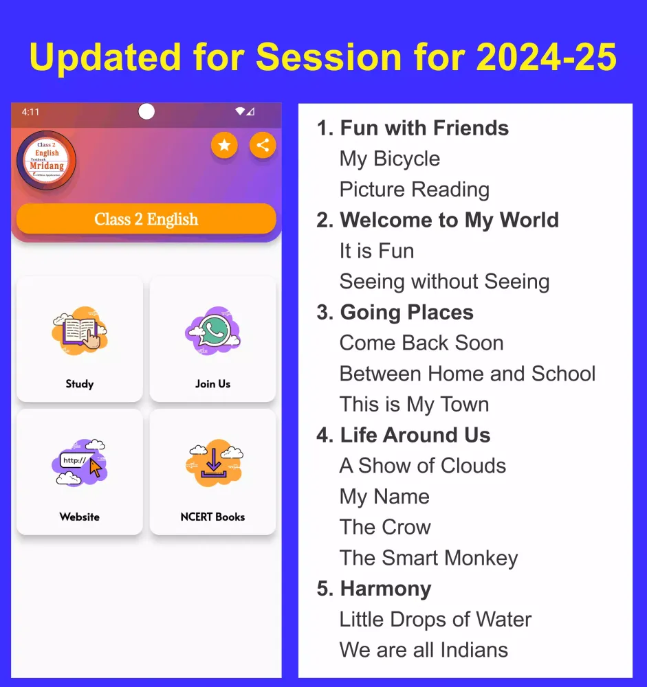 In summary, the "Class 2 English Guide 2024-25" by Mridang is more than just a traditional textbook. It is a dynamic learning companion that combines rich content with innovative features to create an immersive educational experience. Whether you're a student eager to improve your English skills, a parent looking for supplementary resources, or a teacher seeking tools to enhance classroom instruction, this app has something for everyone. Embrace the future of education with this indispensable app and watch your learning journey soar!